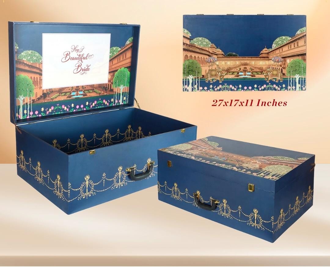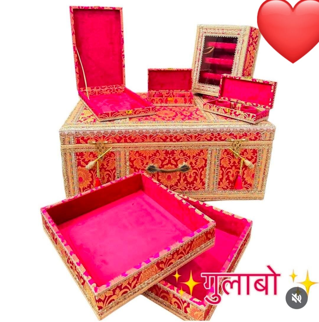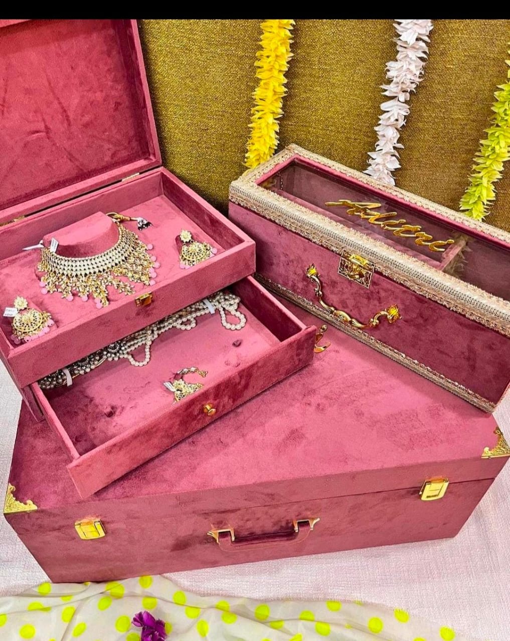 Discover handcrafted bridal trunks, lehenga boxes, sagan sets, and customized packaging solutions that blend luxury, tradition, and personalization for your most memorable wedding moments.